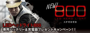 LEDヘッドライト800専用バッテリー&充電器プレゼントキャンペーンが